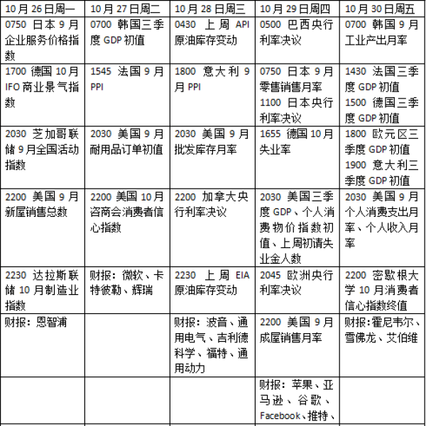 数据方面,本周美国将公布三季度GDP初值,在经历了上季度惨淡的表现后,机构普遍预测美国经济将大幅反弹超过30%,这是大选前为数不多的重磅数据。此外,包括美国9月个人消费支出物价指数月率、咨商会10月消费者信心指数、上周初请失业金人数等指标也值得投资者留意。
