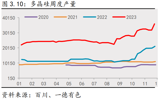 ④ 多晶硅厂如期投产并进行原料端的提前采购备货,消费端环比修复。