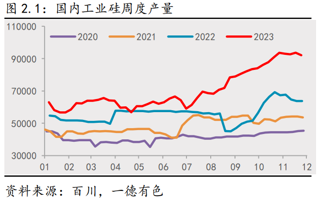 ① 多晶硅产量185万吨,对应工业硅消耗量222万吨,同比增加23%;