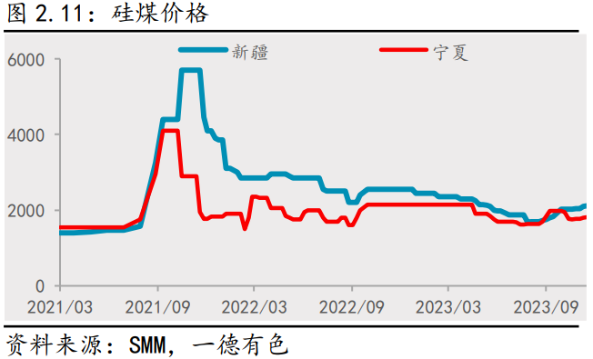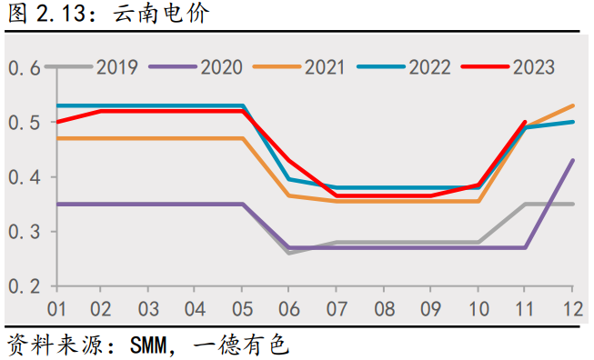 进入11月份云南进入枯水期四川进入平水期,云南地区11月电价普遍在0.5-0.52元/度,四川电价0.48-0.5元/度,进入12月份云南地区或因提高火电配比电价继续小幅增加,而四川地区进入枯水期电价上调至0.6-0.62元/度,新疆地区电价几乎全年持稳在0.35元/度左右。按照11月电价计算,新疆地区生产成本13000元/吨,当下折算盘面利润2100元/吨,云南地区成本15500元/吨左右,折算盘面已面临小幅亏损。此外其他原料价格在经历下跌后当下均有上涨动力,工业硅的成本支撑开始体现。