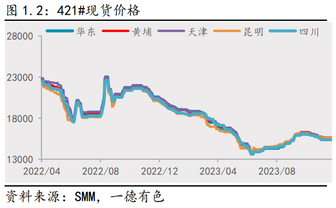 ③ 工厂生产421#卖给期现商的利润更高,因此有条件的工厂尽可能生产可交割421#,造成现货市场其他牌号结构性供应紧张,结构性供应紧缺;