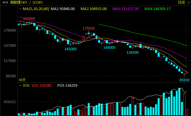 另外,张维鑫认为,当前碳酸锂期货价格存在超跌迹象。“我们认为,未来满足需求的供给边际成本大概率可以控制在80000元/吨以下,但合理价格不会低于该水平太多。当下来看,价格已经在某些高成本的江西项目、非洲项目成本之下,甚至包括一些澳大利亚的高成本项目。”张维鑫表示,由于碳酸锂价格持续下跌,矿端跌幅跟不上,冶炼厂生产经营已面临重大挑战。综合来看,碳酸锂价格在跌破90000元/吨以后,进一步下跌空间较为有限。“从技术分析上来看,6日碳酸锂走出探底回升形态,是一个比较常用的见底信号,市场对昨日反弹预期也较为强烈。”张维鑫说,碳酸锂价格本身存在超跌迹象,基本面出现预期差,市场情绪面又有改善,各方因素共同促成了昨日反弹。