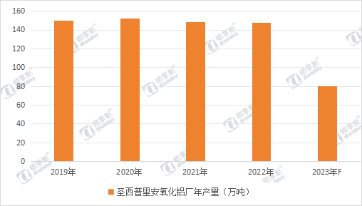圣西普里安氧化铝厂2019-2023年年度产量图