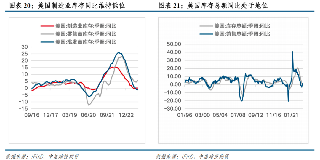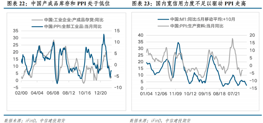 从库存周期来看,目前中美库存周期处于底部,但国内宽信用力度不足以推动PPI走高。