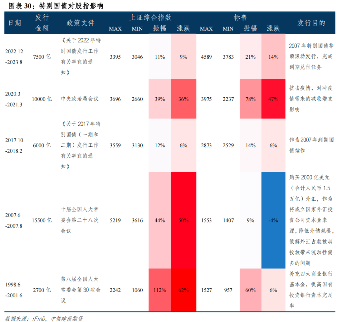 第四次(2020年3月)1万亿特别国债,主要用于抗疫。上证指数2020年从2742—3731点,涨幅36%。