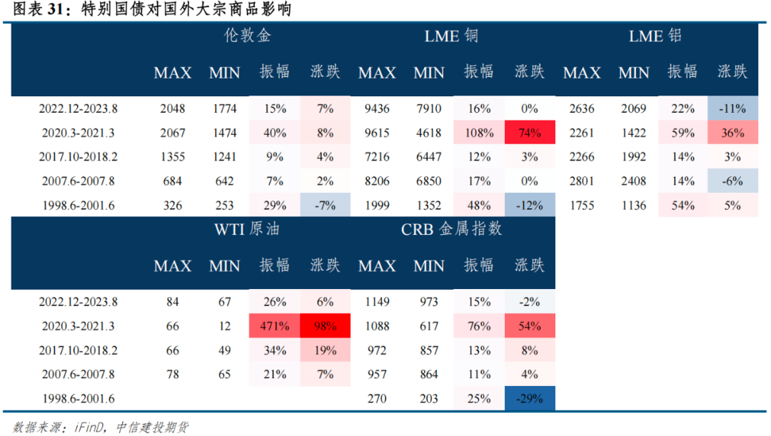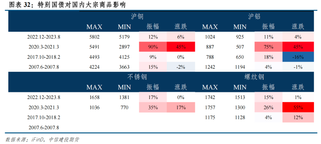 从特别国债对金融和金属市场影响来看,5次特别国债发行期间上证综指平均涨幅达到32.6%,国内金属平均上涨11%。以螺纹钢为例,按3%钢筋原材料测算,未来两年将带动300亿元需求规模,大幅提振钢材市场。