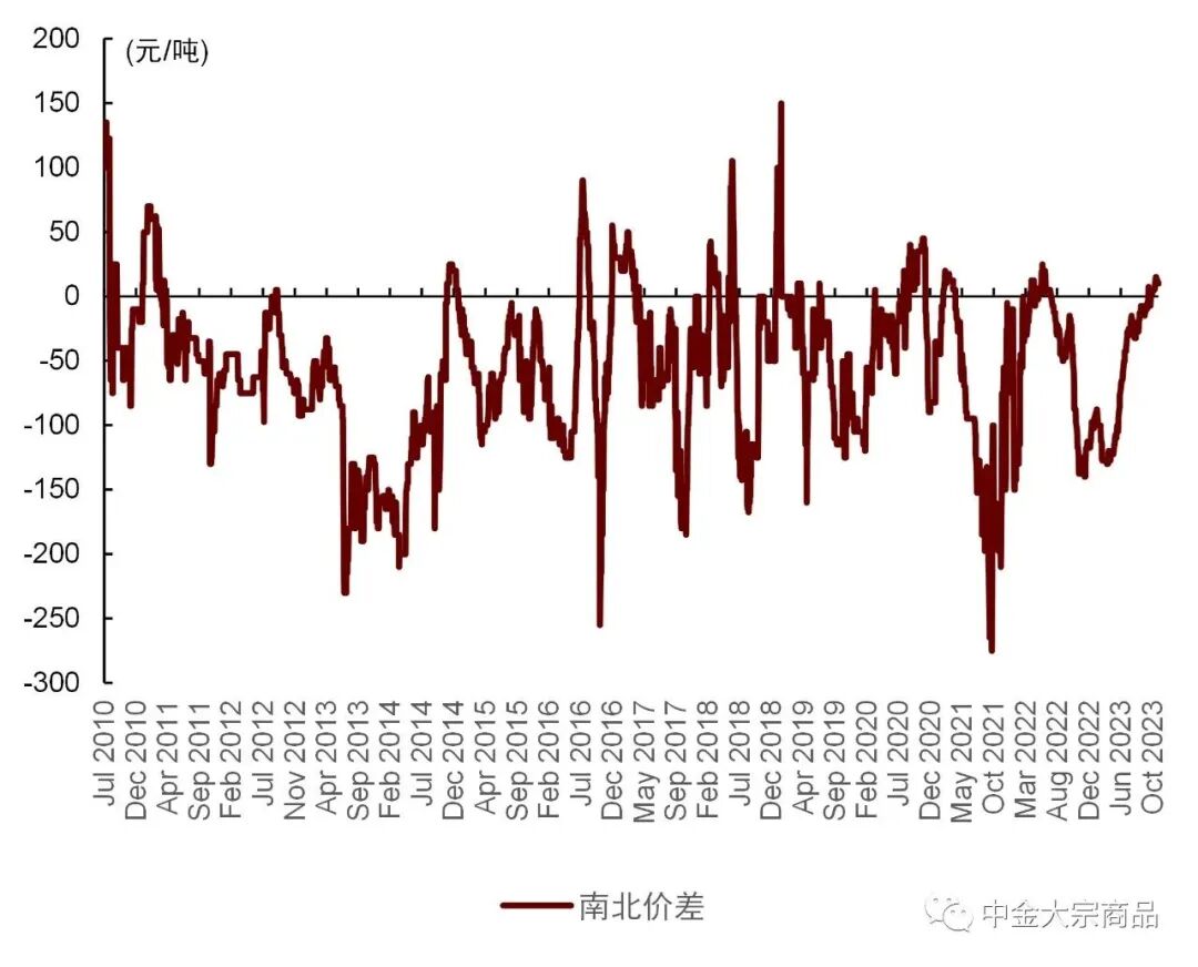 图表:氧化铝南北价差十月后转正
