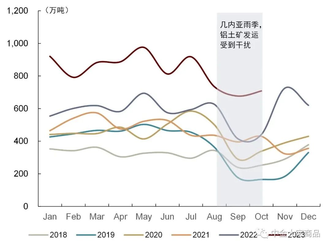 图表:几内亚铝土矿进口量受雨季影响