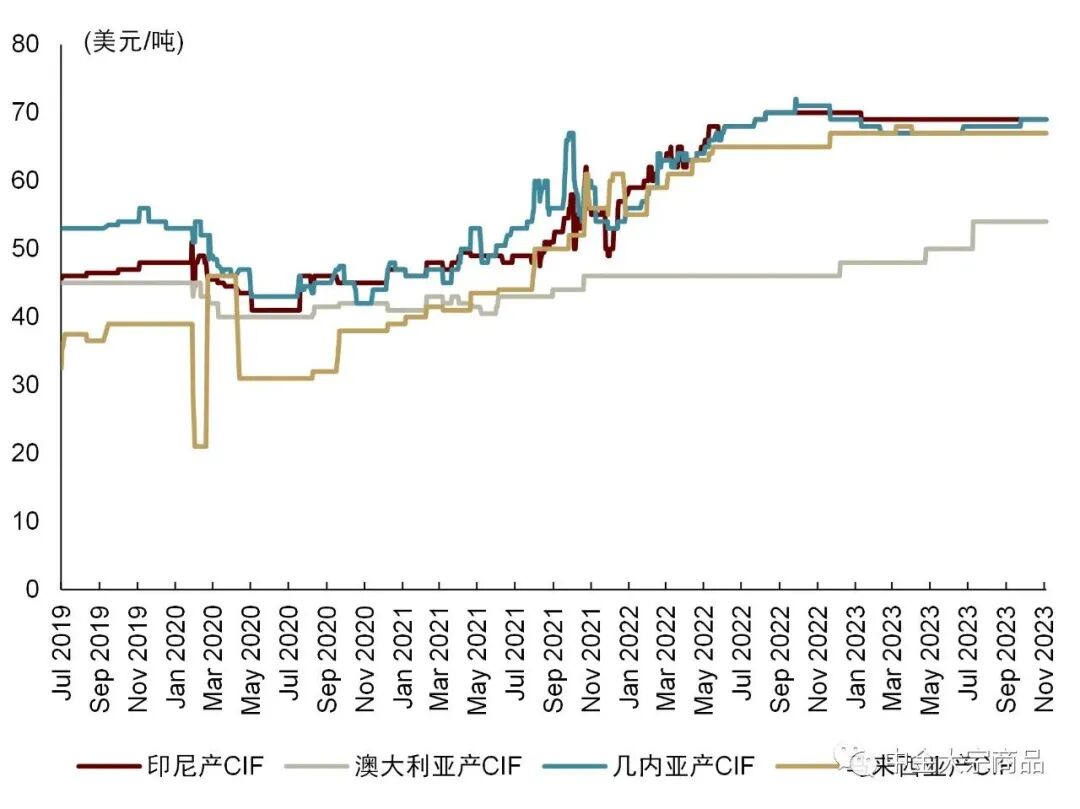 图表:进口铝土矿价格近期较为稳定