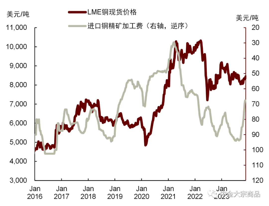 图表1:铜价与进口铜精矿加工费