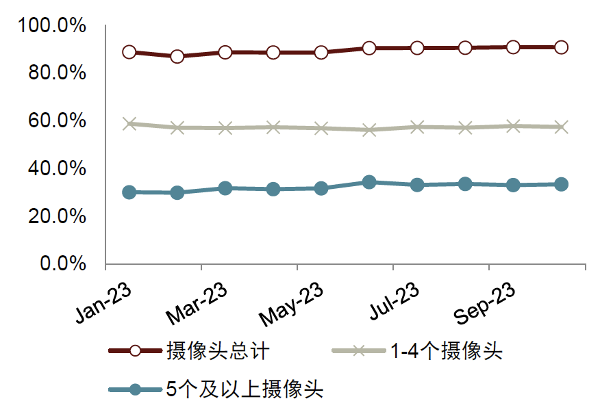 图表24:2023年月度国内乘用车车载摄像头渗透率