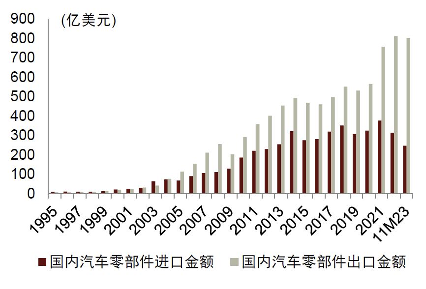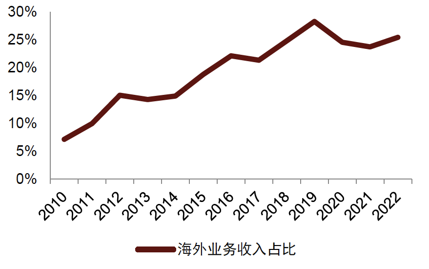 中国汽零参与全球化日益深入,海外敞口快速扩大。中国汽零出口金额过去近30年持续增长、近三年尤为快速。与此同时,中国汽零近三年加速在墨西哥、东欧、东南亚等海外多地的本地化建厂,对海外市场开发更为深入。我们观察到2010-2022年A股汽车零部件板块平均海外收入占比从7%快速提升至25%,海外敞口快速扩大,中国汽零出海扬帆远航。