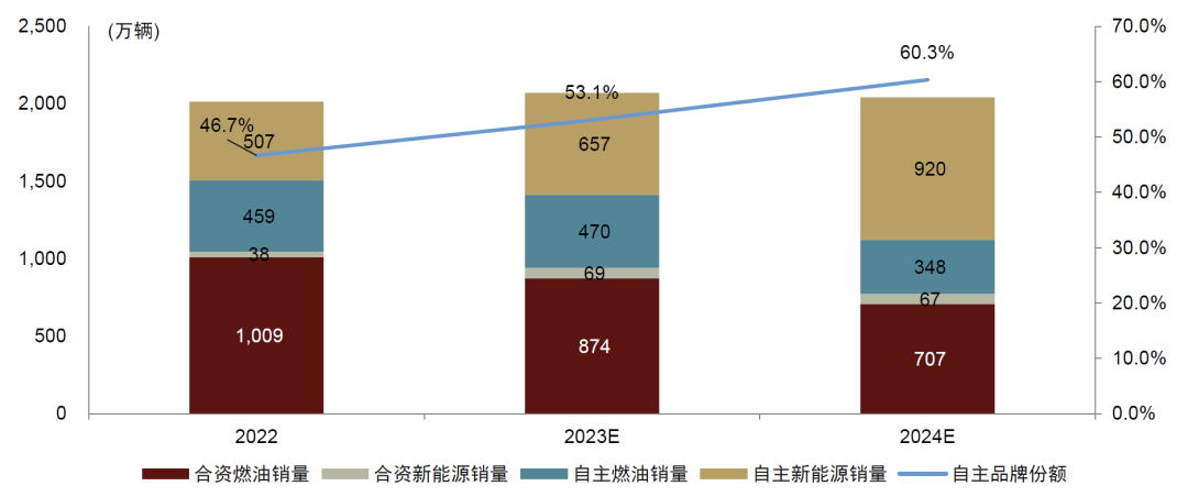 图表13:2022年至2024年自主品牌销量份额有望继续提升