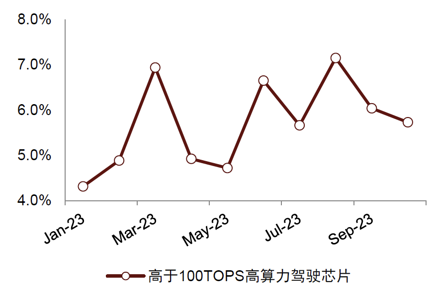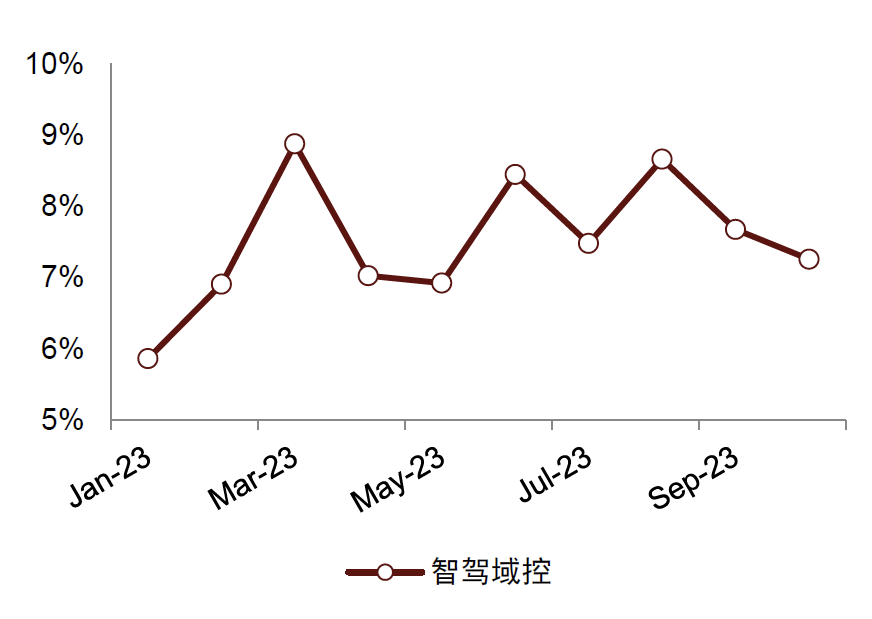 图表26:2023年1-10月国内乘用车智驾域控渗透率