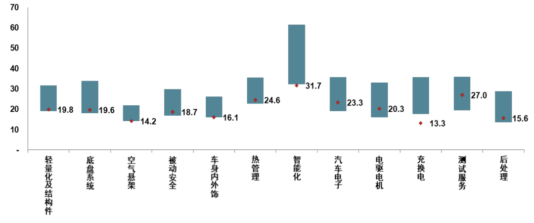 图表22:汽车零部件分赛道2024e P/E估值水平对比(截至2023/12/21)