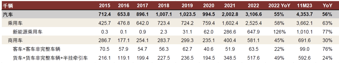 注:2020-22年出口量口径为中汽协,2020-22年批发销量口径为乘联会