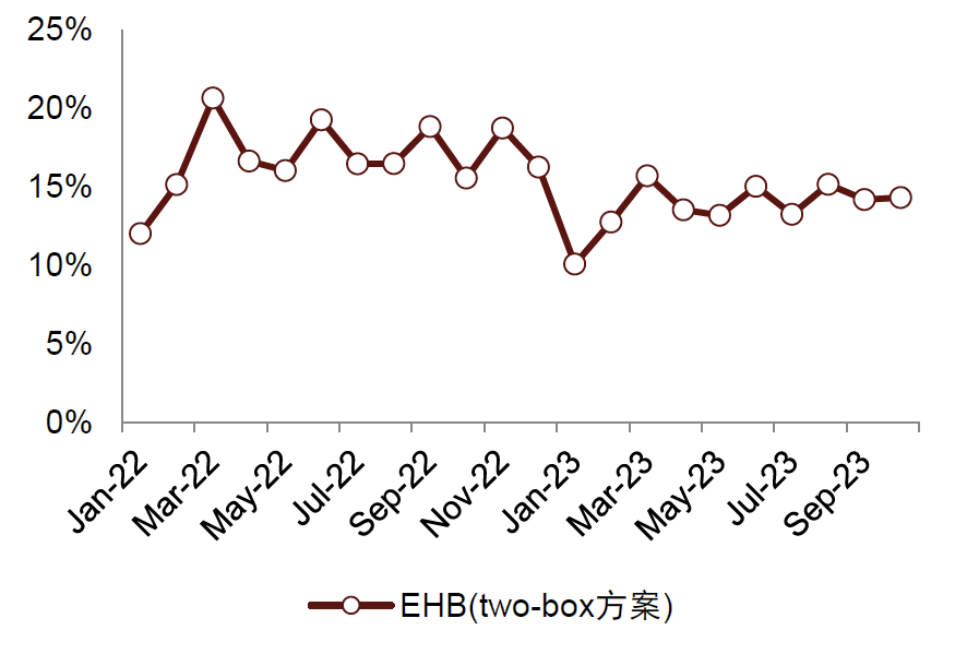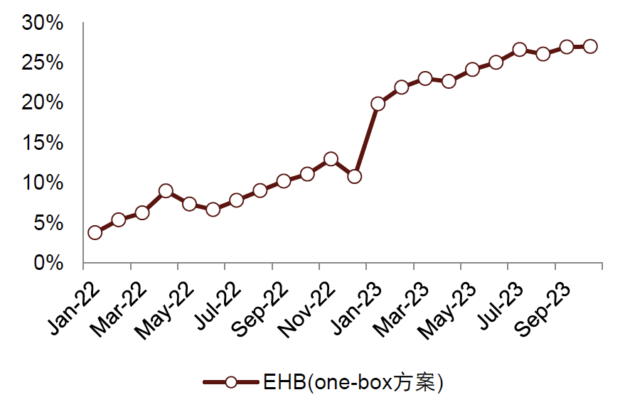 图表28:2022年1月至今EHB(One-Box)渗透率