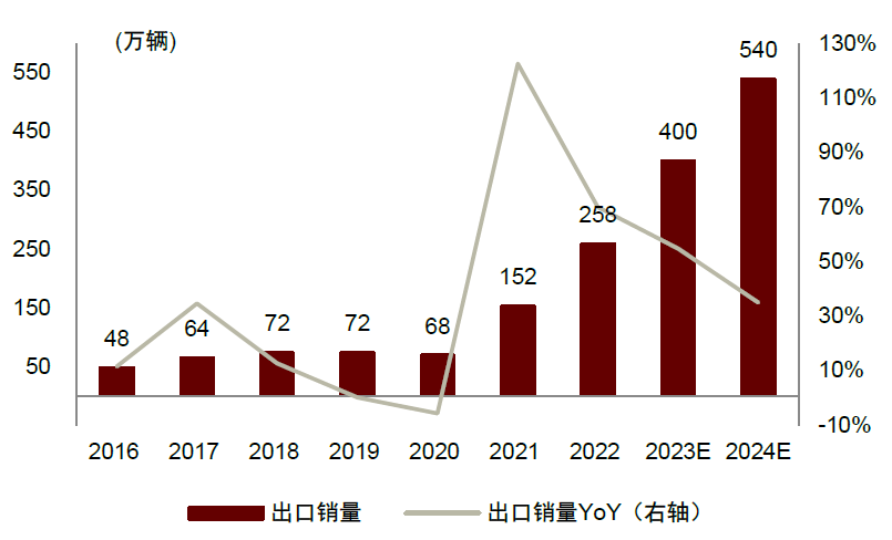 注:出口销量计算方式为出口量+自主品牌海外产量