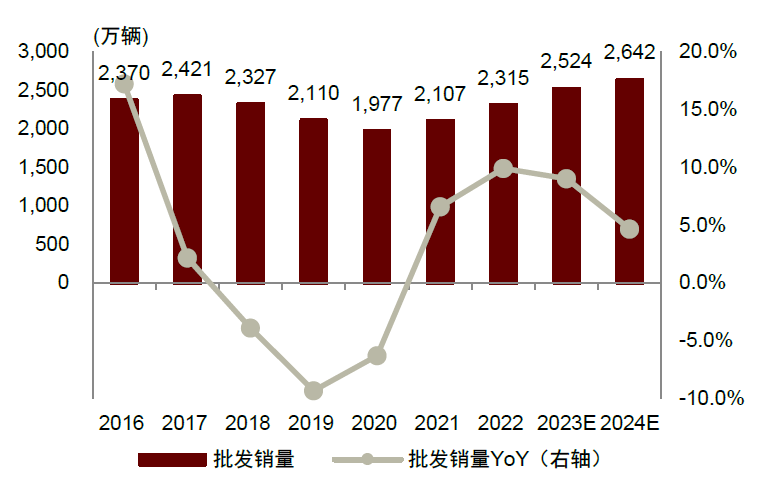 图表2:2024年乘用车国内批发销量有望表现平稳