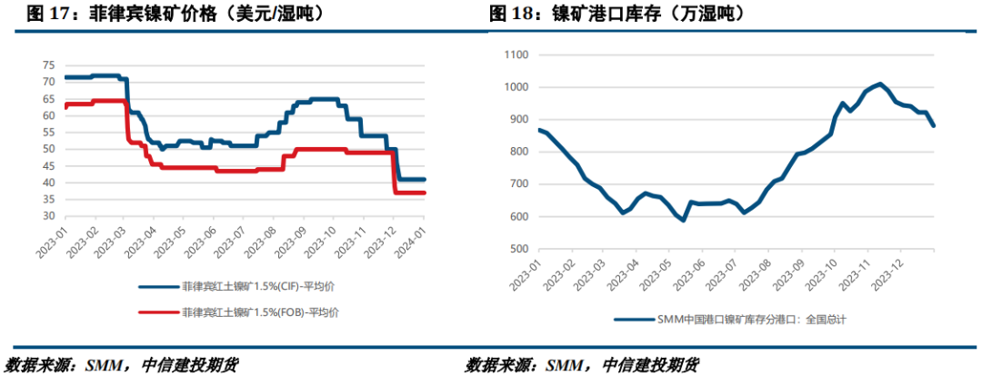 纯镍:目前纯镍供需双弱,镍价中枢仍在锚定电积镍成本,但是累库压力或将使得镍价上方空间有限。