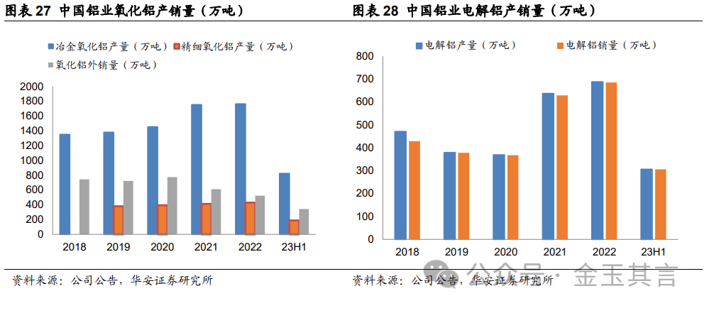 氧化铝产能持续爬坡,印尼项目贡献上游增量。公司在新疆石河子建成120万吨电解铝生产线,配套建有发电机组和预焙阳极产线,在广西靖西市已建成250万吨氧化铝生产线,在满足自用生产电解铝的情况下亦有部分外销。海外方面,公司2023 年2月公告境外孙公司收购印尼ITM公司100%股权,包含了三家铝土矿的控制权和采矿权,并计划在印尼分两期建设200万吨氧化铝生产线,目前一期100万吨项目正在做前期的准备工作,包括环评、征地、国内审批等。