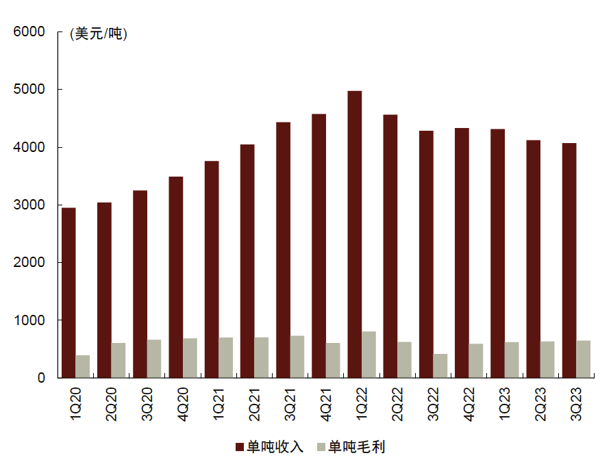图表23:诺贝丽思吨加工毛利高达600美元左右