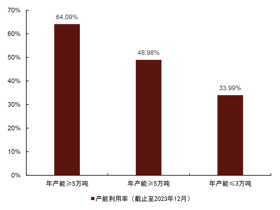 但这一现状正在逐步得到改善。上游回收来看,我国已经开始着手规范现有的金属回收体系,并采用建设再生金属回收园区的方式提高行业集约化程度。同时,垃圾分类回收与再生资源回收的“两网融合”工作持续推进,有效提升提升了家电、罐箔用铝的回收分类水平。中游加工方面,工信部于2013年发布的《铝行业规范条件》中规定:新建再生铝项目的规模应在年产10万吨以上,现有再生铝企业的生产规模不小于年产5万吨[4]。此外,在行业激烈的成本竞争和原料短缺下,小型产能劣势明显;我们也能在产能利用率的大小分化上找到其佐证。我们认为这部分产能有望逐步出清,竞争格局趋于改善。