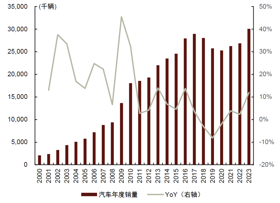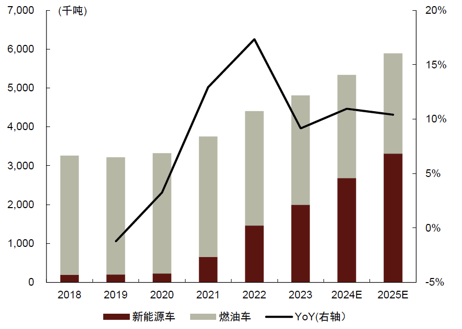 根据IAI统计,全球来看,交运行业是目前废铝产出最多,回收率最高的下游板块(86%)。同时,汽车也是再生铝消费量最大的下游行业。据安泰科统计,汽车行业占到再生铝消费量 60%以上。自2000年起,我国汽车销量开启迅猛增长,而增速于2010年达峰。根据累计保有量与使用寿命计算,中期内废铝供给增量将主要来自汽车行业。向后看,随着新能源车渗透率的逐步提高,以及汽车的轻量化发展,单车用铝量持续抬升。供需两旺下,我们认为打通原料获取与终端消费的闭环回收模式也将迎来发展机遇。