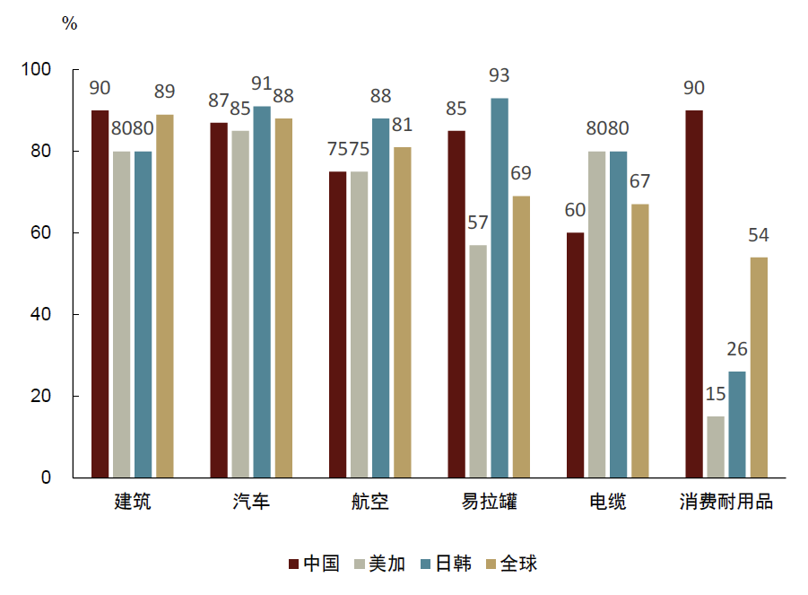 目前,我国再生铝行业加工产能过剩而原料供给不足。虽然根据国际铝业协会(IAI)统计,2020年我国废铝回收率已高达77%,处于全球领先水平。但由于我国进入工业化的时间相对较晚,社会上铝的积累量仍有待提升,因此废铝产出不足,叠加近年来我国废铝进口标准逐步收紧,再生铝加工环节长期处于原料短缺、开工率低迷的状态。结合日本等成熟国家经验,随着回收系统的逐步完善,以及社会存量铝的报废高峰到来,我们预计我国废铝供应也将逐渐转向国内社会废料为主、进口废料仅作为补充的格局。