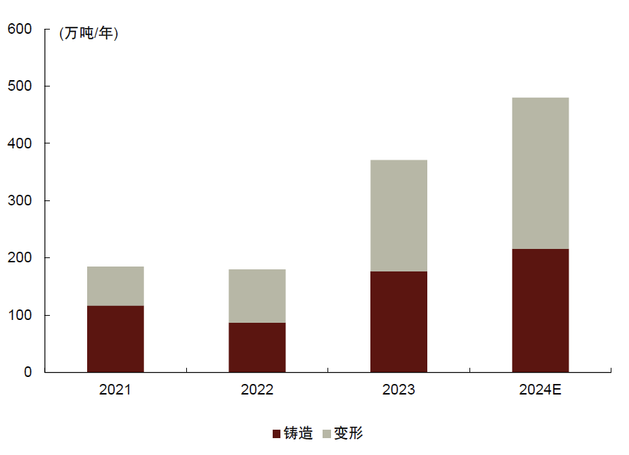 除此之外,再生铝厂家正发力投入保级回收,从而提高产品附加值,增厚盈利。全球经验来看,再生铝龙头诺贝丽思通过与主流车企广泛建立闭环回收的合作关系,向上稳定回收渠道,向下深度介入整车设计,合作开发车用铝板,从而获取加工利润的显著优势。向后看,我国再生铝加工产能仍在加速放量,且其中保级回收的变形合金项目占比不断提升。我们认为未来具有整合渠道、保级回收能力的大型再生铝回收企业或表现更优。