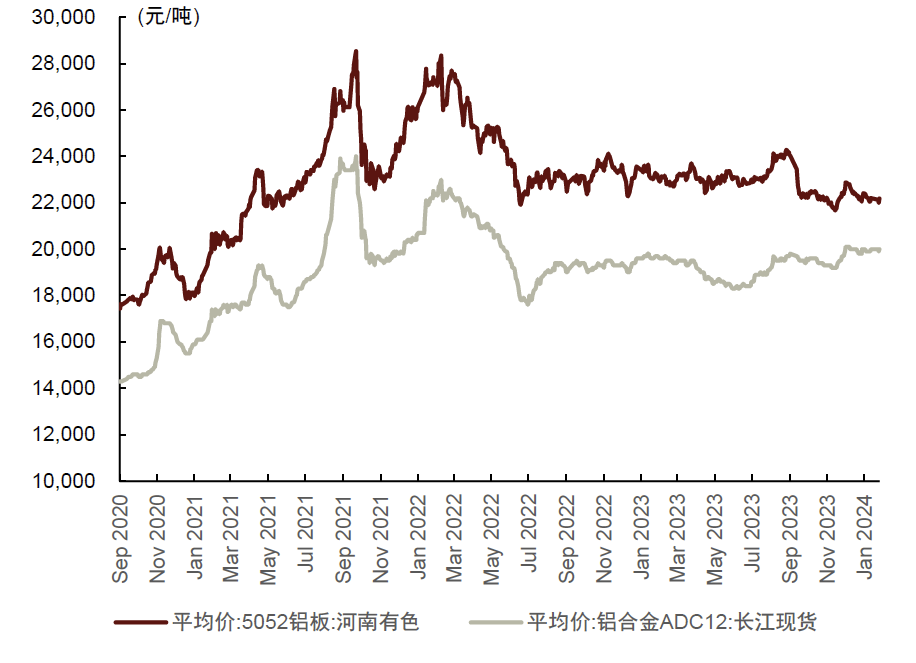 小而分散的格局也限制了行业整体的研发投入与技术进步,保级回收水平整体不足。根据SMM统计,2021年,约80%的废铝用于生产经济附加值较低的铸造合金。其中,ADC12的消费量占总废铝消费量的71%。而作为对比,根据美国铝业协会统计,2020美国铝罐闭环循环率达92.6%。降级回收会带来巨大的价值损耗,厂商利润也较为微薄。以建筑业广泛应用的5052镁铝合金板为例,其简单重熔为ADC12铝合金相较于原级回收具有10%-20%的折价。根据阿拉丁调研,2023年ADC12的平均利润仅有200元左右,在铝价低点的2023年5-6月份,ADC12行业甚至陷入整体亏损。