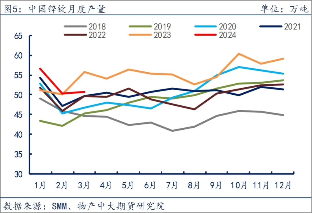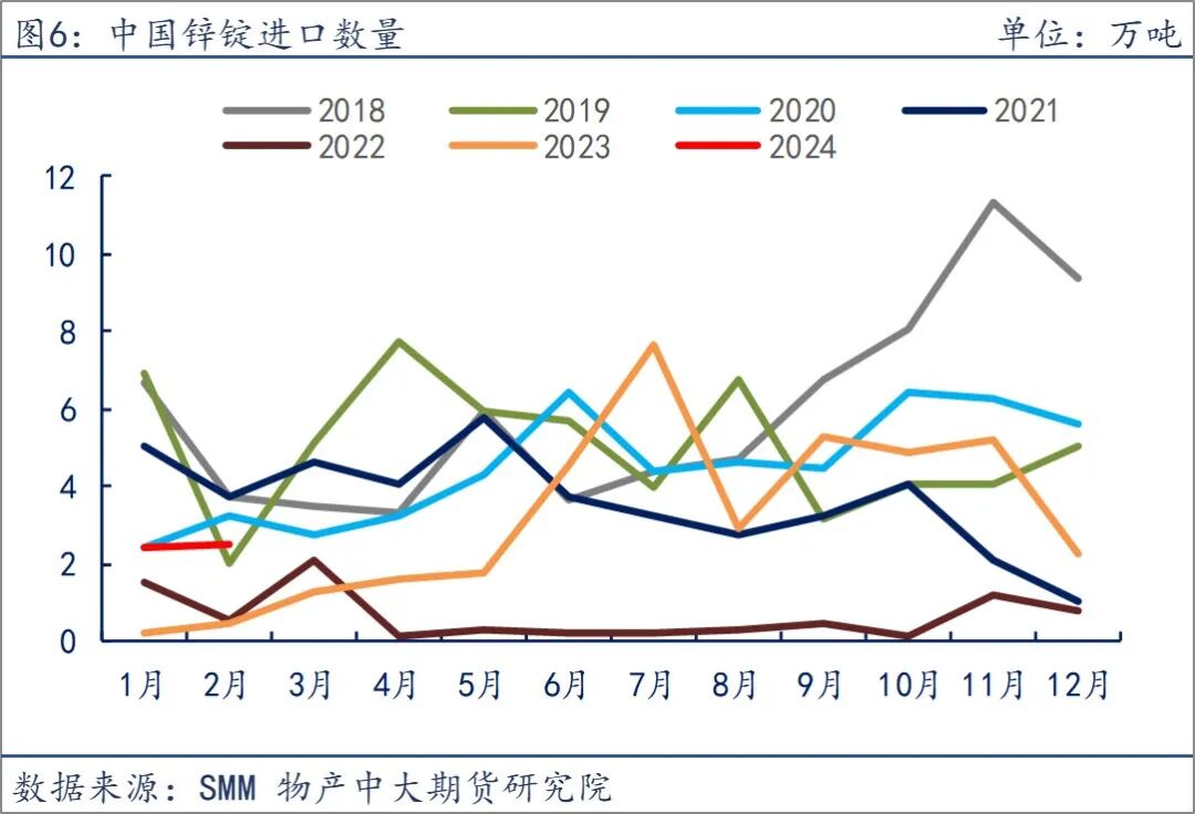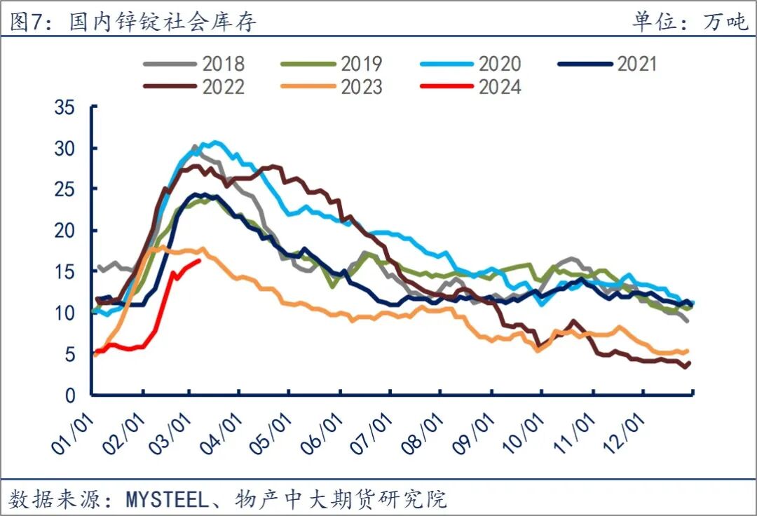 国内方面,今年经济和通胀预期目标较为积极,财政政策持续加码。2024年GDP增速预期目标为5%左右,持平2023年目标,在去年经济增长进一步回归正常的背景之下,今年低基数效应消退,这一目标整体较为积极。财政政策方面有增量部署。2024年赤字率3%,持平2023年年初预算;赤字规模4.06万亿元,比2023年年初预算增加1800亿元。总体来看,国内外流动性的改善预期是对锌价的利好提振,尤其在6月以前,仍然存在交易流动性宽松预期的空间。