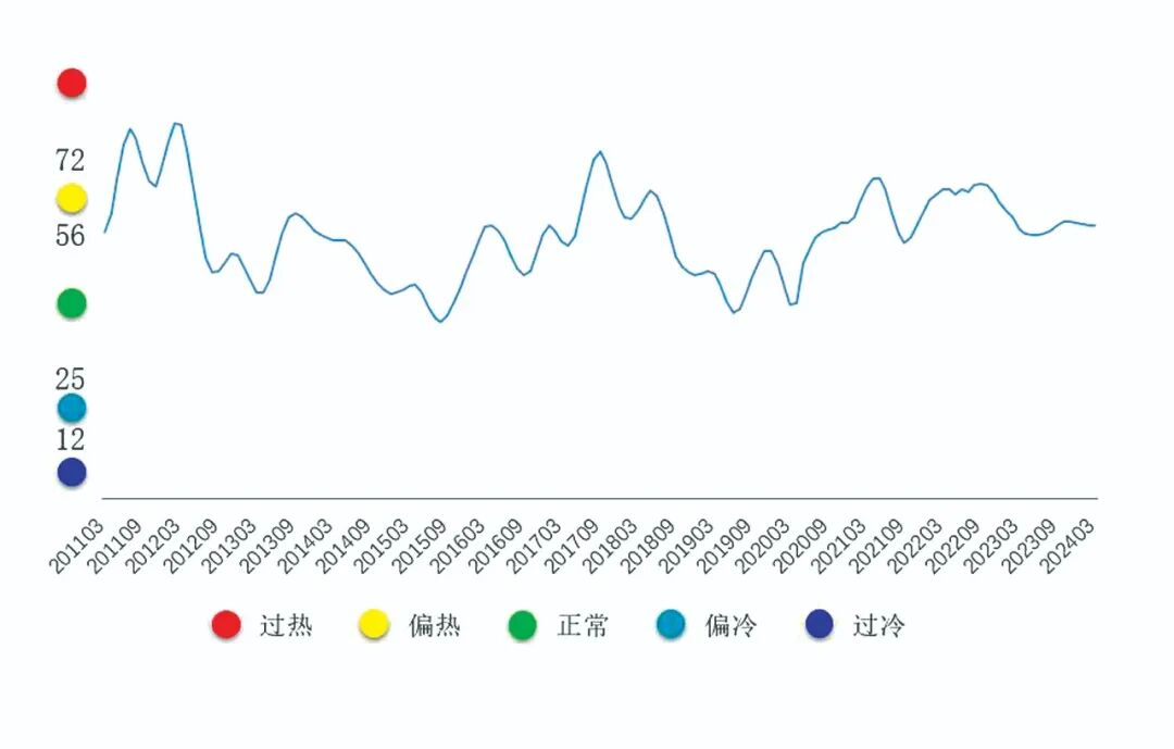 2023年3月至2024年3月中国铜产业月度景气指数表