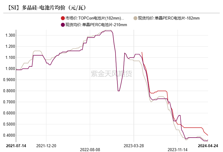 硅片库存压力延续,价格降幅显著。上周P型-182硅片价格环比降0.05至1.65元/片、P型-210硅片价格环比持平于2.10元/片,N型-182硅片价格环比降0.1至1.60元/片,N型-210硅片价格环比持平于2.30元/片。