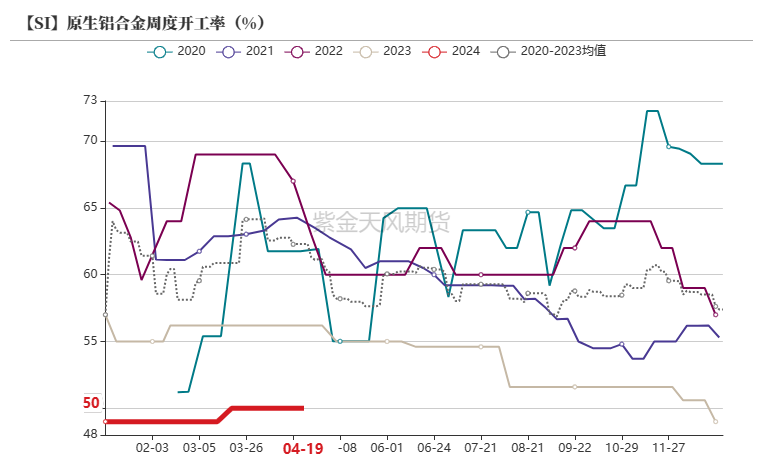 硅铝合金开工率:中性 上周再生铝合金开工率环比增持平于59.8%、原生铝合金开工率环比持平于50%。