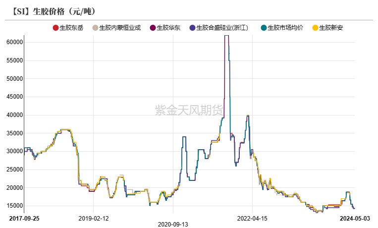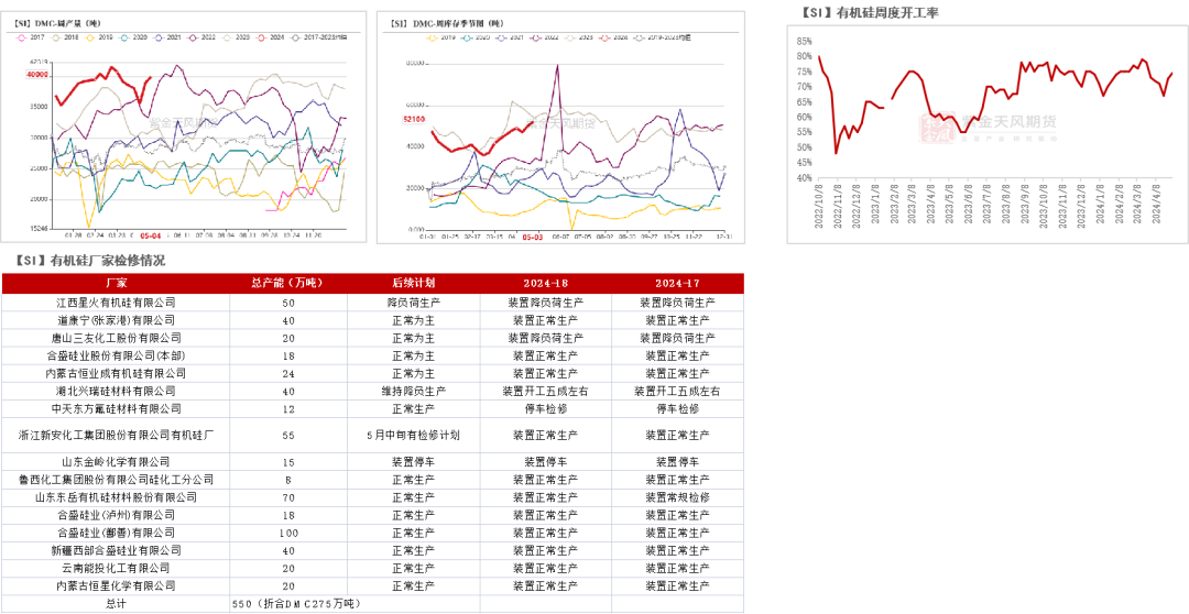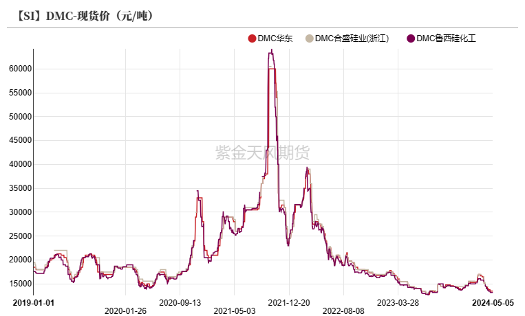 截至4月30日,DMC价格较4月26日环比降100至13400元/吨、华东生胶环比持平于14300元/吨,107胶环比持平于13900元/吨,硅油环比持平于15400元/吨。