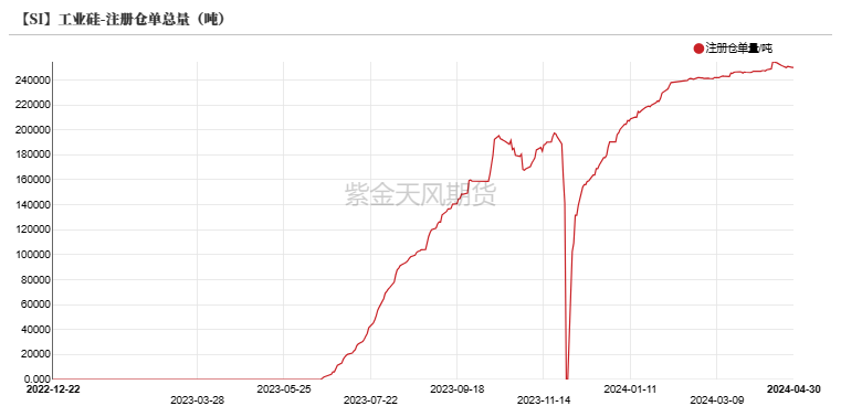 截至4月30日,注册仓单共5.00万手、25.00万吨;较4月26日减少170手、850吨。