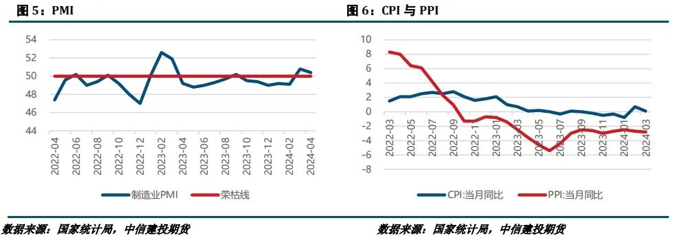 总的来说,再通胀交易逻辑驱动镍价维持高位,后市关注宏观预期的转向,若滞涨被验证,那么镍价存在回调风险,并且本轮行情镍价涨幅弱于其他有色,说明基本面支撑并不牢靠,镍价面临的压力相较其他有色品种可能也会更大;不锈钢基于行情回暖上调排产,不过本轮行情更多地是成本因素所引发,成本端扰动继续加剧的边际风险或相对有限,故在5月排产上行的情况下,更要关注需求端的承接力度,对此我们提示回调风险。NI2406参考区间137000-147000元/吨,SS2409参考区间13600-14600元/吨。