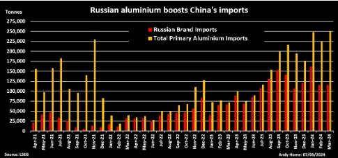去年,该国从俄罗斯进口了120万吨原铝,高于2022年的46.2万吨。事实上,俄罗斯金属占进口总量的四分之三。