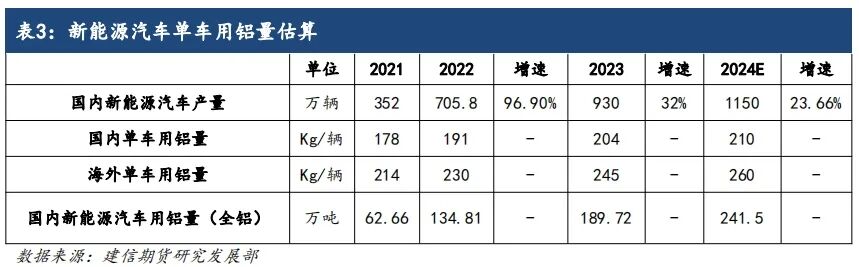 3、国内新能源汽车领域再生铝合金使用比例将有较大提升空间