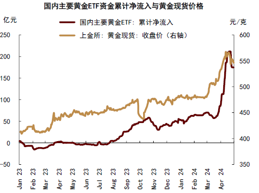 4月中东地缘风险再次触发避险行情。与历史经验一致,避险资金并未长期停留,4月下旬以来黄金、石油和美元指数均已有所回落。5月初,全球黄金ETF持仓已转为下降,国内黄金ETF资金也已开始流出。随着风险偏好修复,我们提示避险需求的反身性交易可能对黄金价格形成短期压制。