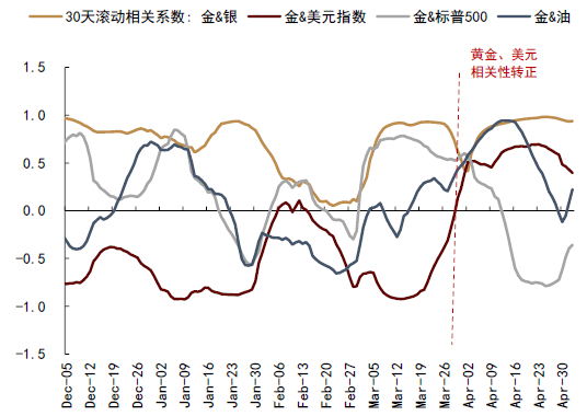 图表6:3月底以来黄金价格与美元指数相关性转正