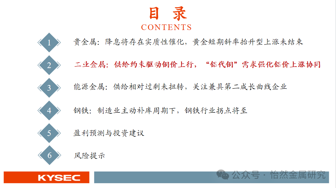 2.工业金属:供给约束驱动铜价上行,“铝代铜”需求强化铝价上涨协同