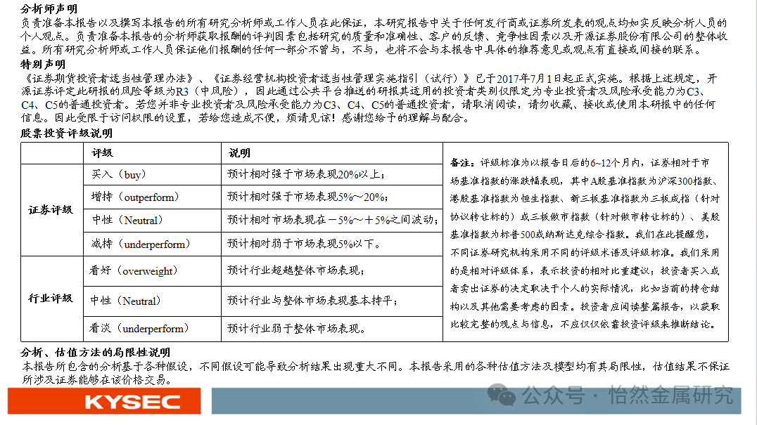 铜:产能释放节奏不及预期、矿石及铜精矿销售节奏不及预期、矿石品位超预期、矿石回收率超预期提升等。