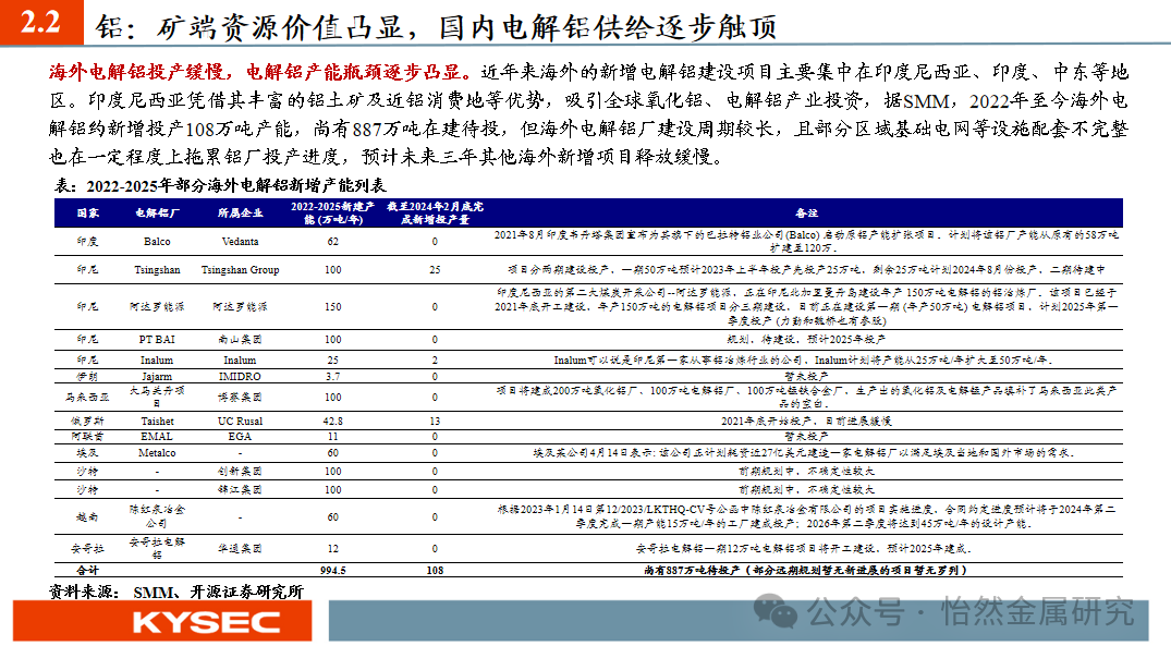 铝:国内需求不急预期;海外电解铝产能释放超预期。