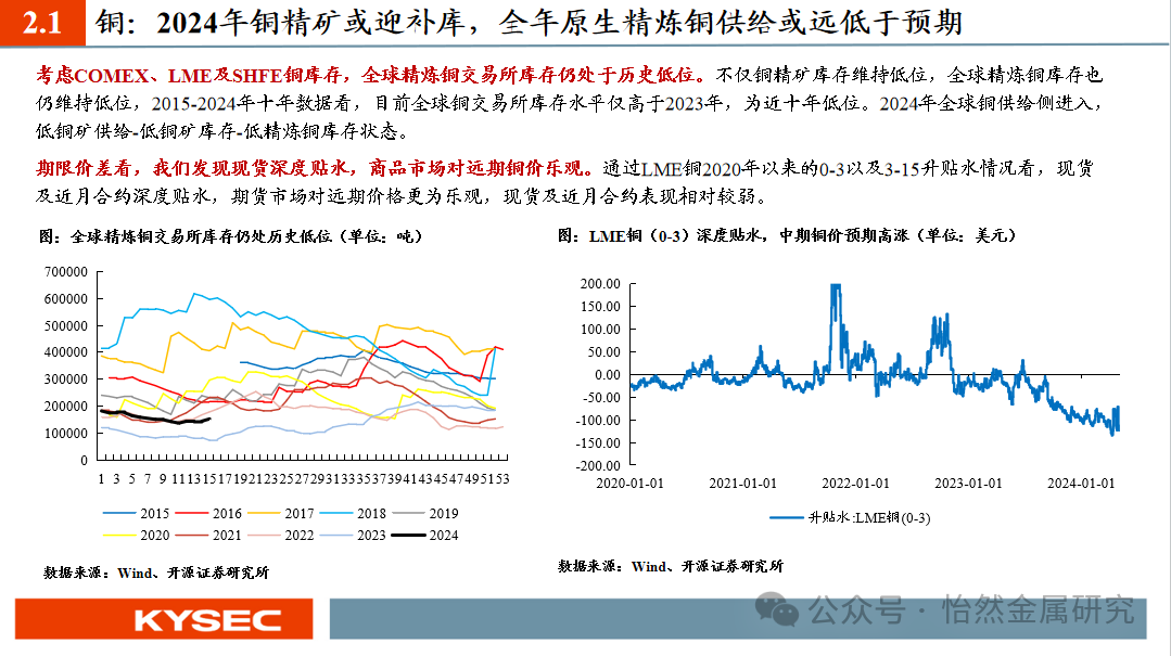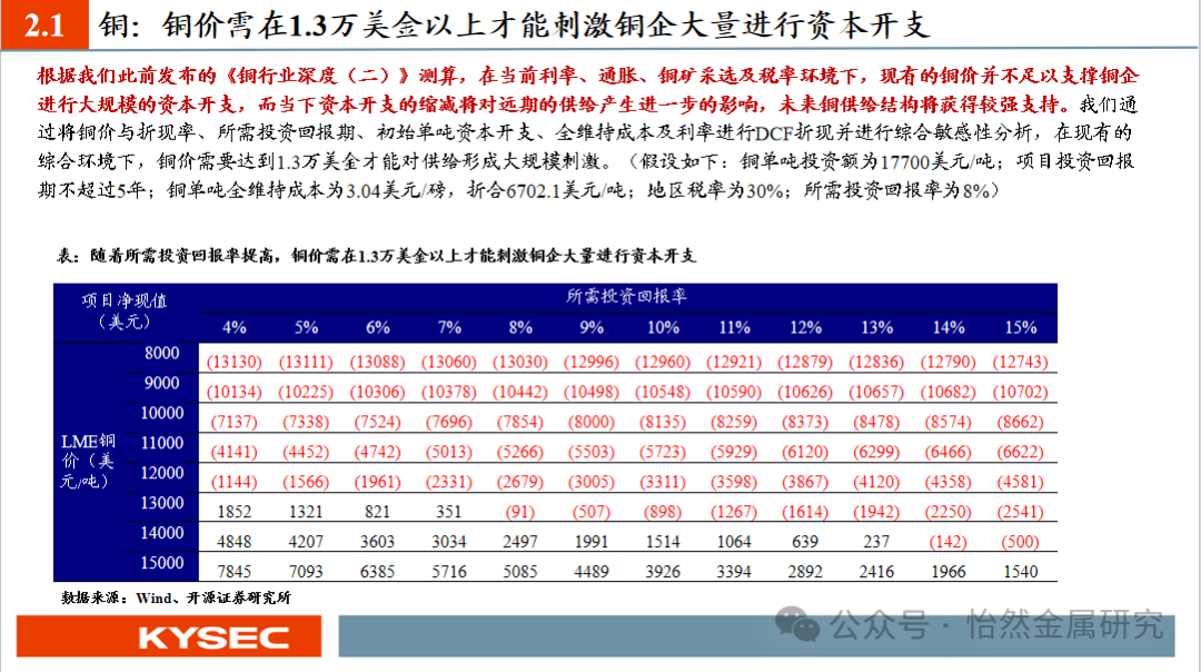 铜:供给端,铜精矿供给紧缺叠加低库存,铜精矿供给迎来近乎2021年锂矿“皮尔巴拉”时刻。根据我们《铜深度报告二》测算,铜价需到1.3万美金上方才对资本开支形成刺激。需求端,本轮铜价上涨源于海外,传统跟踪国内需求的模式或面临挑战,国内需求走弱更多体现为海内外价差的走阔,同时,过去的跟踪方式局限于追踪铜的制造业需求,考虑到贸易后的终端需求,海外实际需求占比或高于前期需求模型的测算值。受益标的:紫金矿业、洛阳钼业、金诚信等。