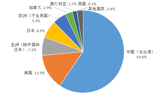 从收入来源国看,力拓拥有遍布全球的1900余家客户。2023年世界各地区销售份额中,中国(含台湾)占比最高,达59.6%,其次是美国、亚洲(不含中国和日本)、日本等国家/地区。