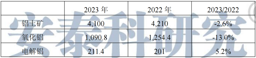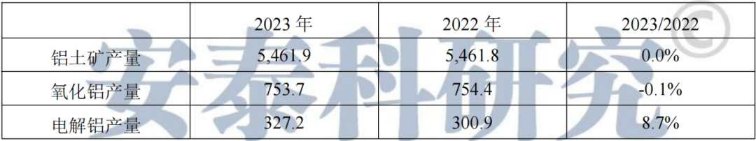 2023年铝土矿产量增加主要由于C.B.K矿场铝土矿出口至第三方及部分出口至Aughinish氧化铝精炼厂而恢复营运。