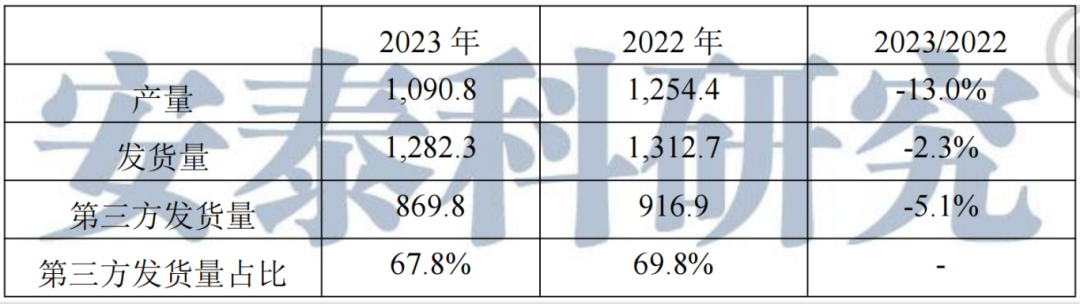 表8 2023年海德鲁铝产品产量 单位:万吨