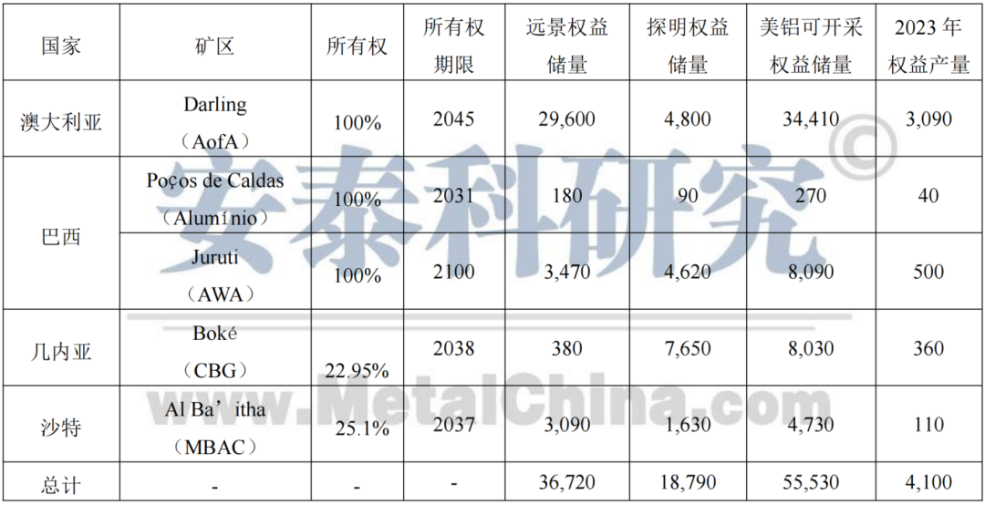 ①2023年,海德鲁与嘉能可签署了一项协议,嘉能可收购Alunorte氧化铝精炼厂30%的股份以及海德鲁在铝土矿生产商Mineracão Rio do Norte (MRN)公司的5%所有权。嘉能可还收购了淡水河谷公司(Vale)在MRN 40%的股份,Vale和海德鲁之间的铝土矿协议已于2023年11月30日终止,未来嘉能可将长期从MRN为Alunorte氧化铝精炼厂提供约30%的铝土矿。